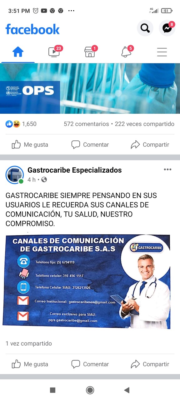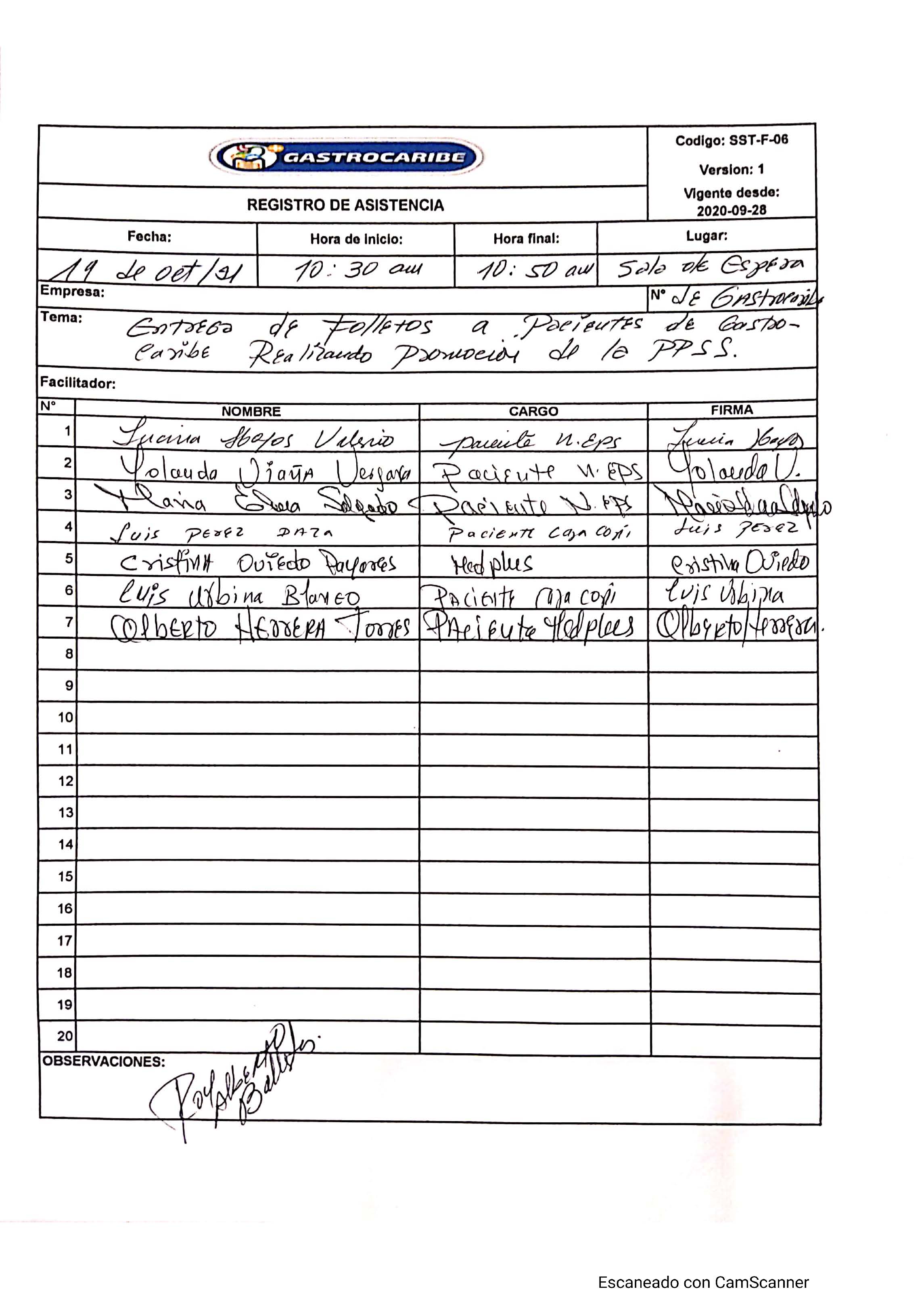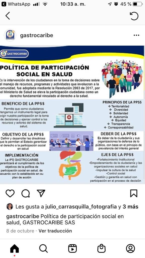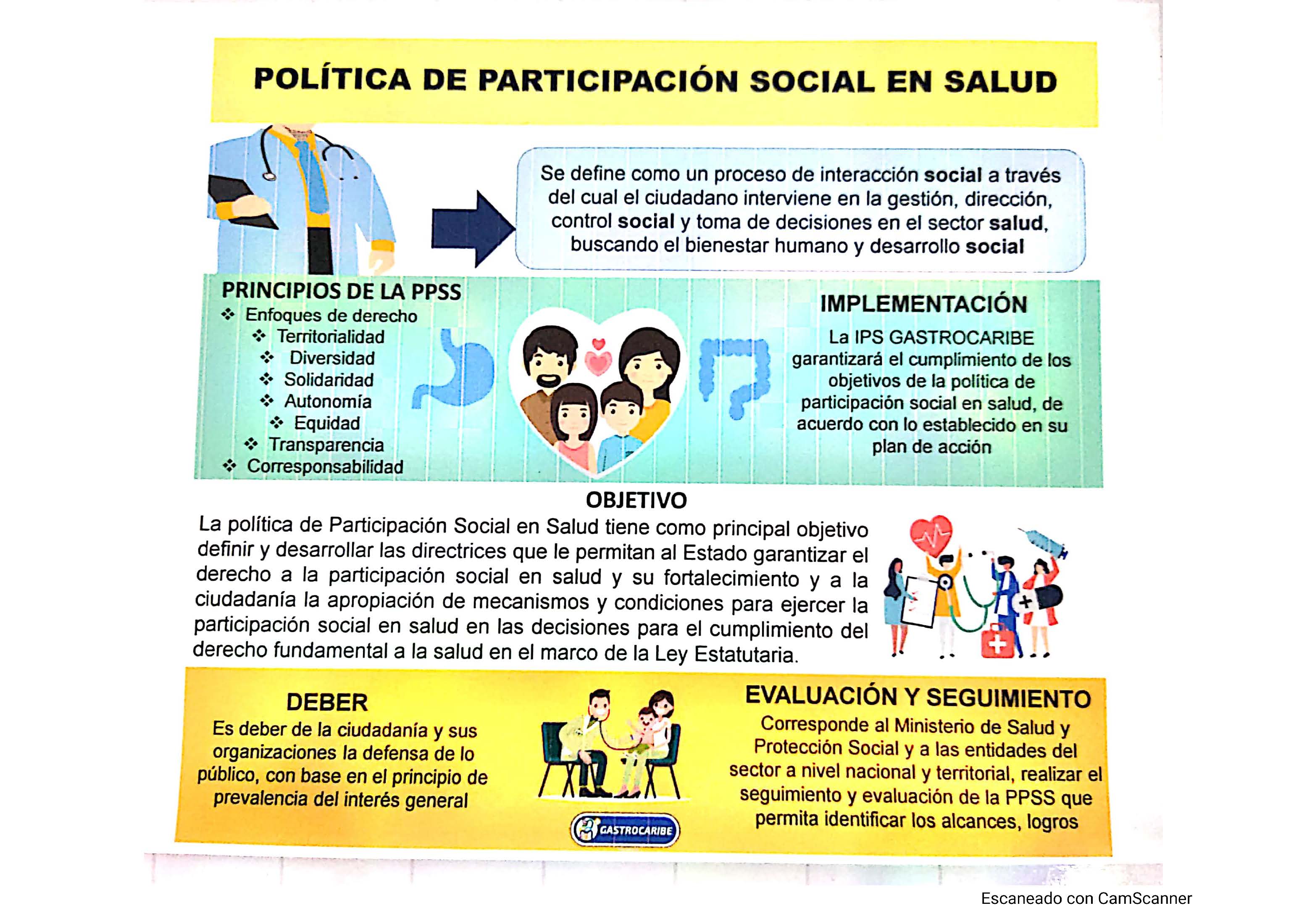 Gastrocaribe S.A.S en aras de garantizar una mejor participación en salud y en cumplimiento de la implementado de la resolucion N° 002063 de 2017 de Política de Participación Social en Salud desarrolló las siguientes actividades: