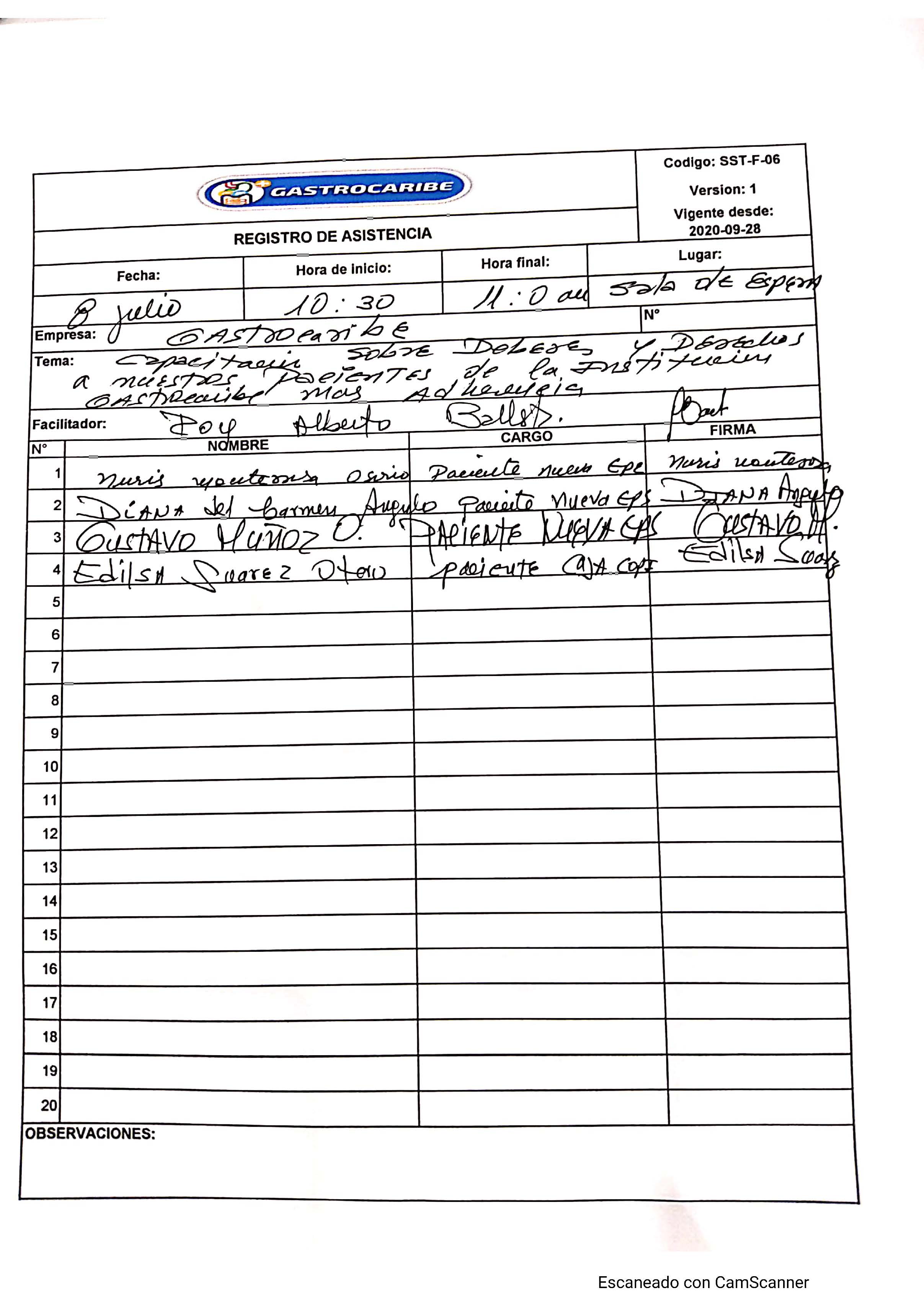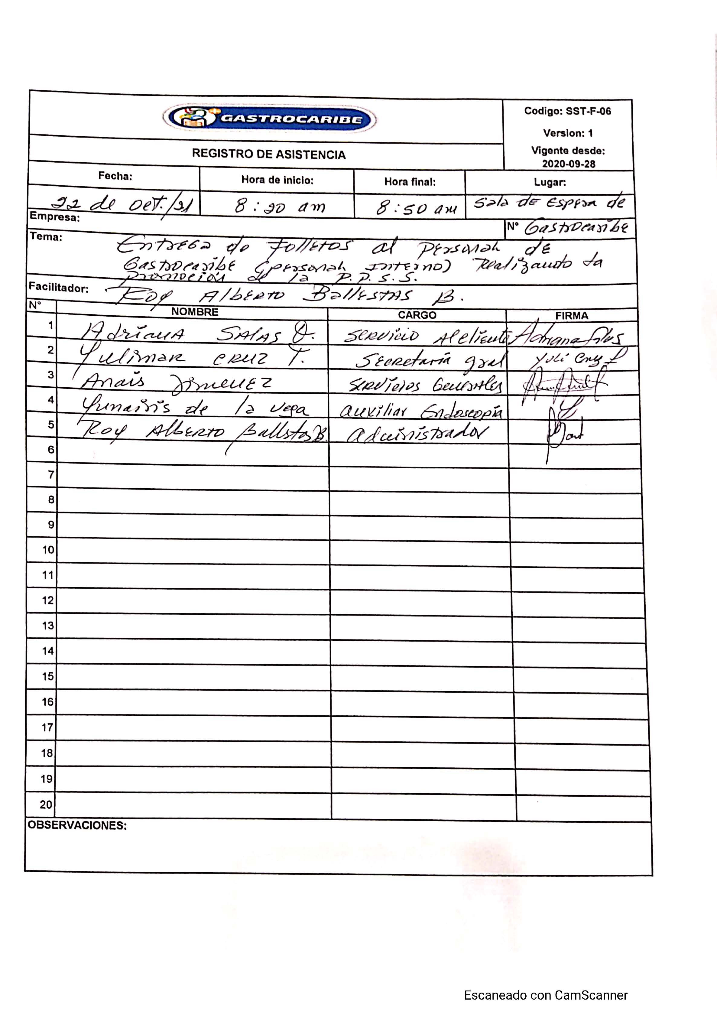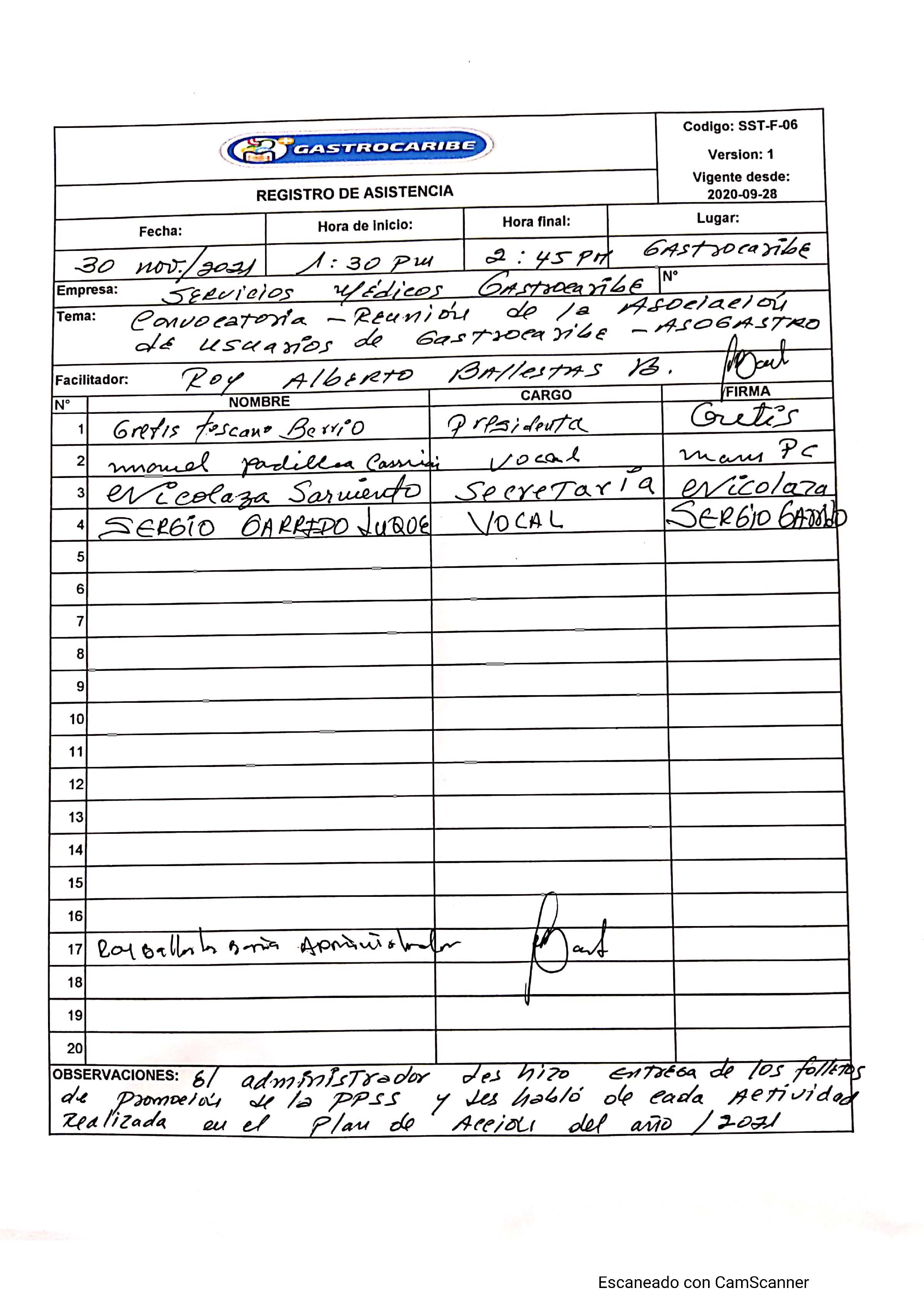 Gastrocaribe S.A.S en aras de garantizar una mejor participación en salud y en cumplimiento de la implementado de la resolucion N° 002063 de 2017 de Política de Participación Social en Salud desarrolló las siguientes actividades: