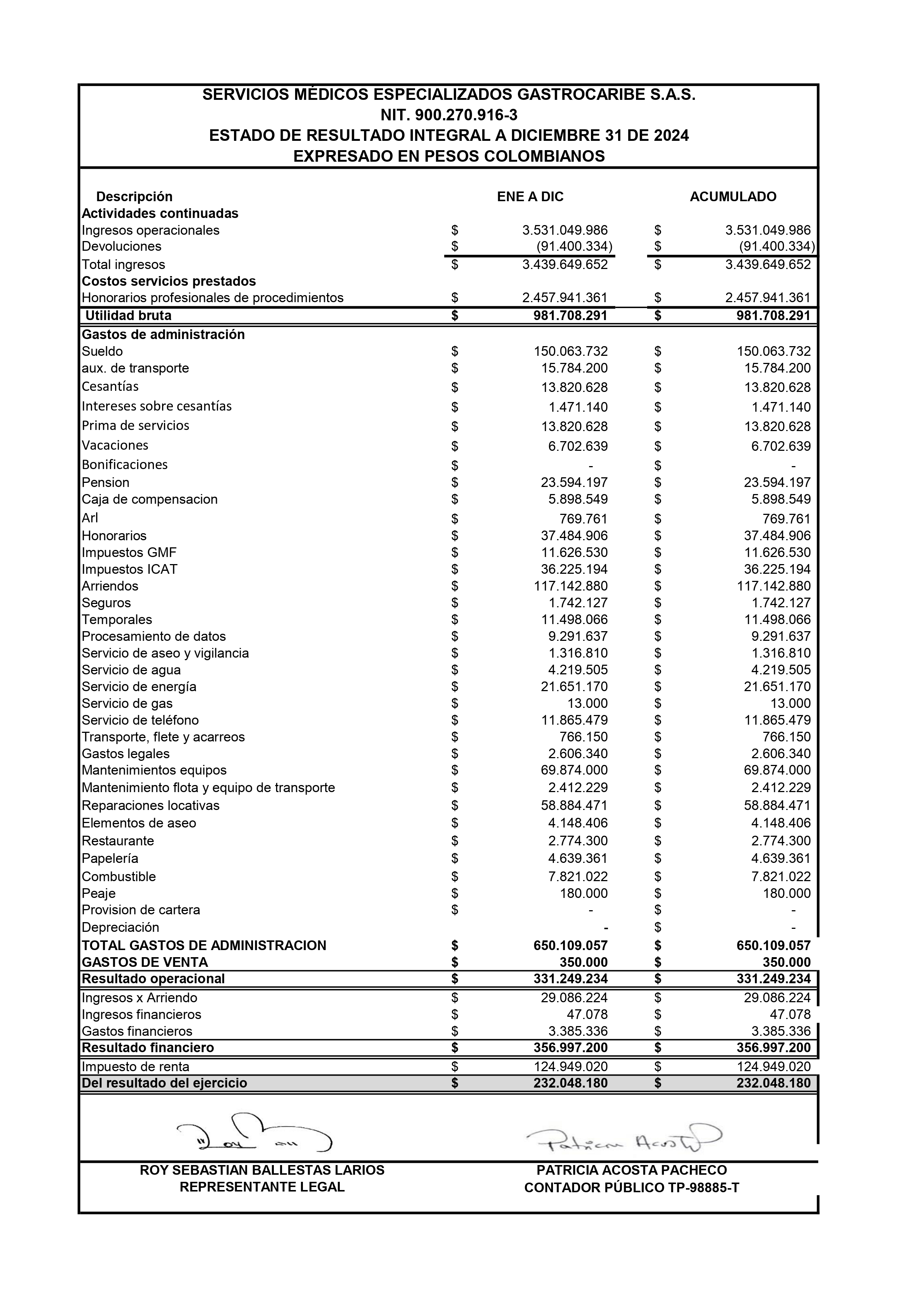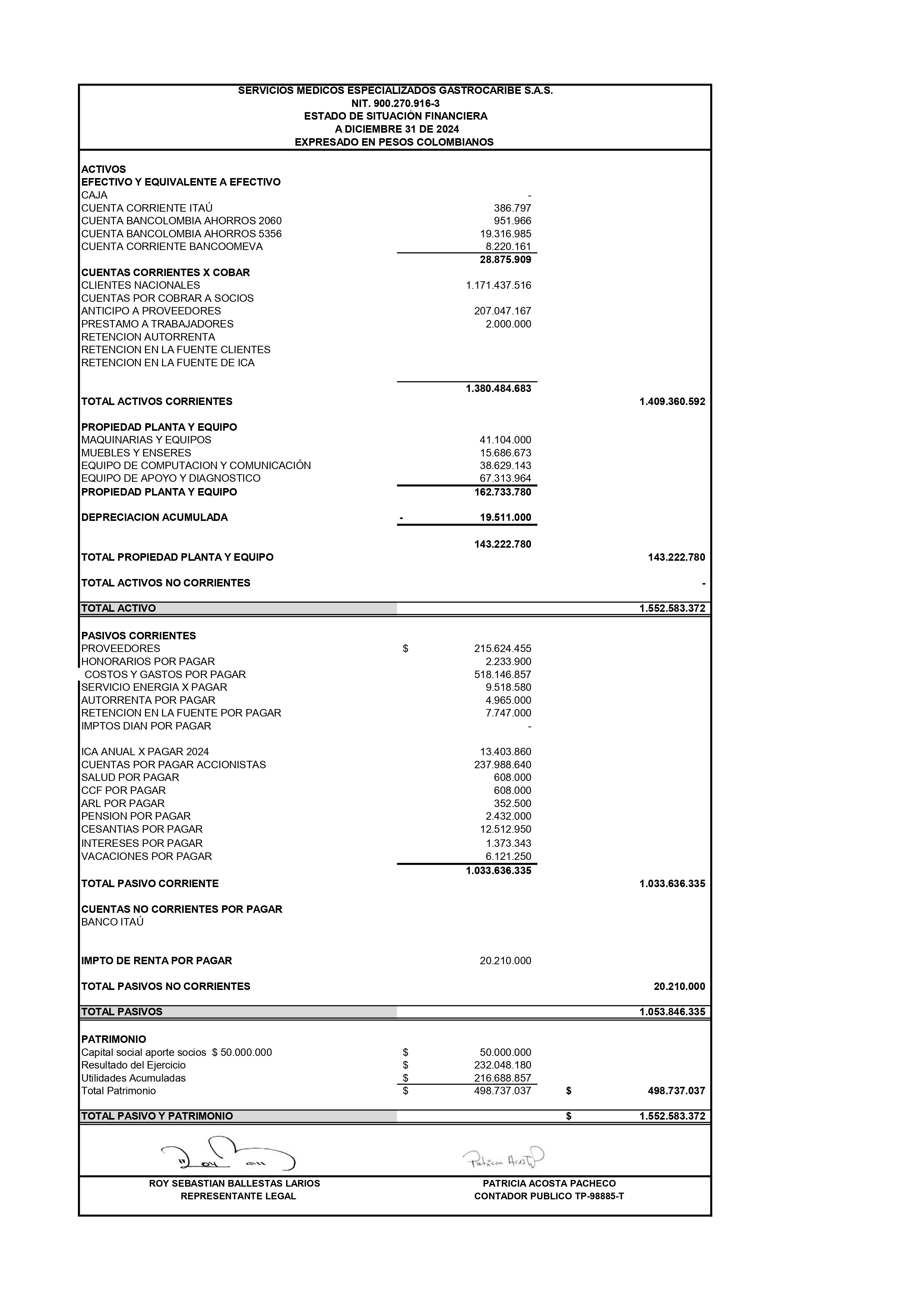E.S.FI. DIC 2024 GASTROCARIBE SAS