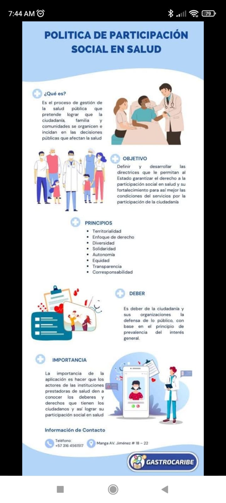 Gastrocaribe S.A.S en aras de garantizar una mejor participación en salud y en cumplimiento de la implementado de la resolucion N° 002063 de 2017 de Política de Participación Social en Salud desarrolló las siguientes actividades: